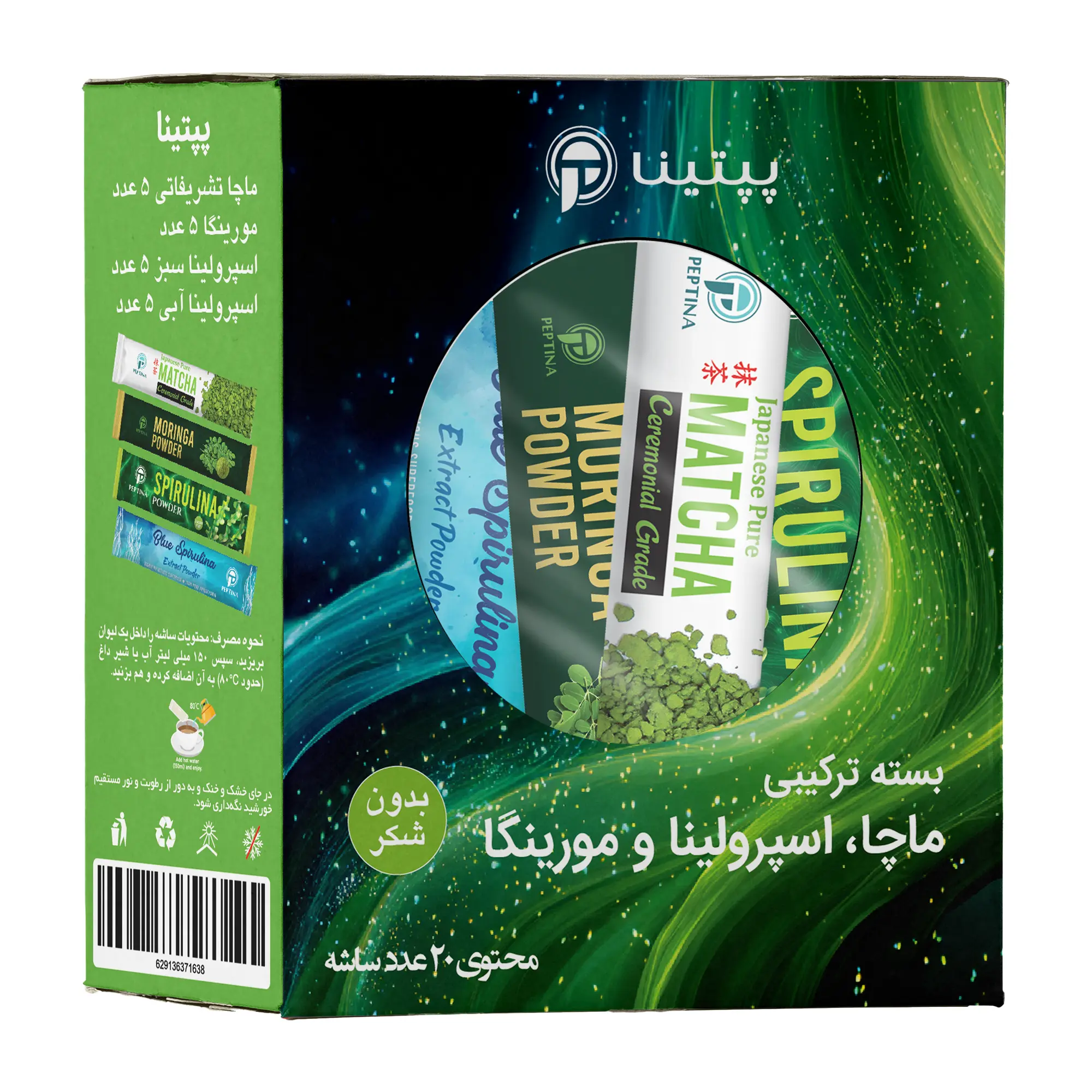 بسته ترکیبی ماچا، اسپیرولینا و مورینگا پپتینا یک انتخاب ایده‌آل برای افرادی است که به دنبال تجربه طعم‌ها و خواص متنوع سوپرفودها هستند. این پک ۲۰ عددی شامل ۵ ساشه ماچا تشریفاتی، ۵ ساشه اسپیرولینا سبز، ۵ ساشه اسپیرولینا آبی و ۵ ساشه مورینگا است. هر چهار محصول کاملاً گیاهی، سالم، بدون شکر و مناسب برای سبک زندگی سالم‌محور هستند. انتخابی عالی برای کسانی که می‌خواهند انرژی، تمرکز، سم‌زدایی و تقویت سیستم ایمنی را هم‌زمان تجربه کنند.
